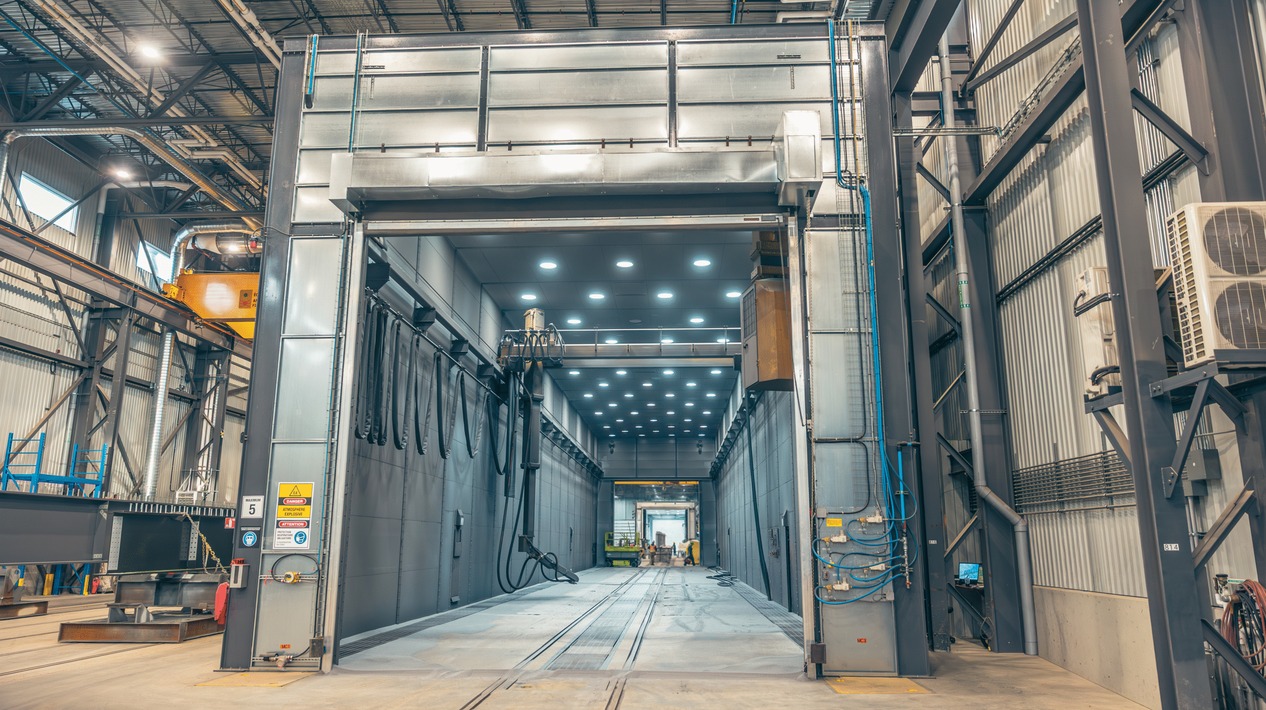 The implementation of the custom paint booth delivered significant benefits to Northwest Pipe Company. It provided a safer working environment by containing overspray and preventing buildup on critical infrastructure such as electrical panels and walls. Moreover, the efficient ventilation system effectively managed VOCs, contributing to environmental sustainability and regulatory compliance.