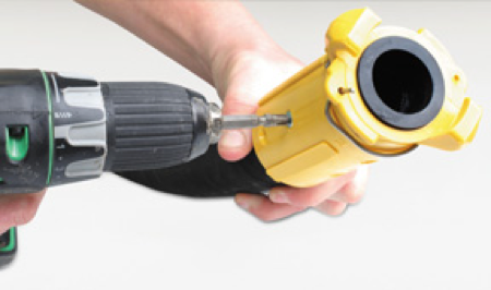 Make sure to always use the proper size fastening screws for each hole. Initially these screws will push the hose away from the from the inner wall of the coupling. Continue to tighten until the hose has been drawn back to the coupling. Do not over tighten and never use screws long enough to pierce through the entire hose into the blast stream. Doing so will offer escape paths for air pressure which will promote premature wear or failure.