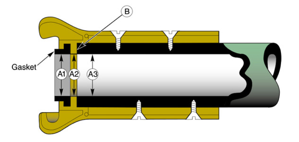 Check that the Blast Hose Bore (A3) is equal to (or smaller than) the Flange Bore (A2) and the Gasket Bore (A1). For hoses with a bore greater than 1 1/4″ (32mm), use Mega Max Large Bore Couplings.